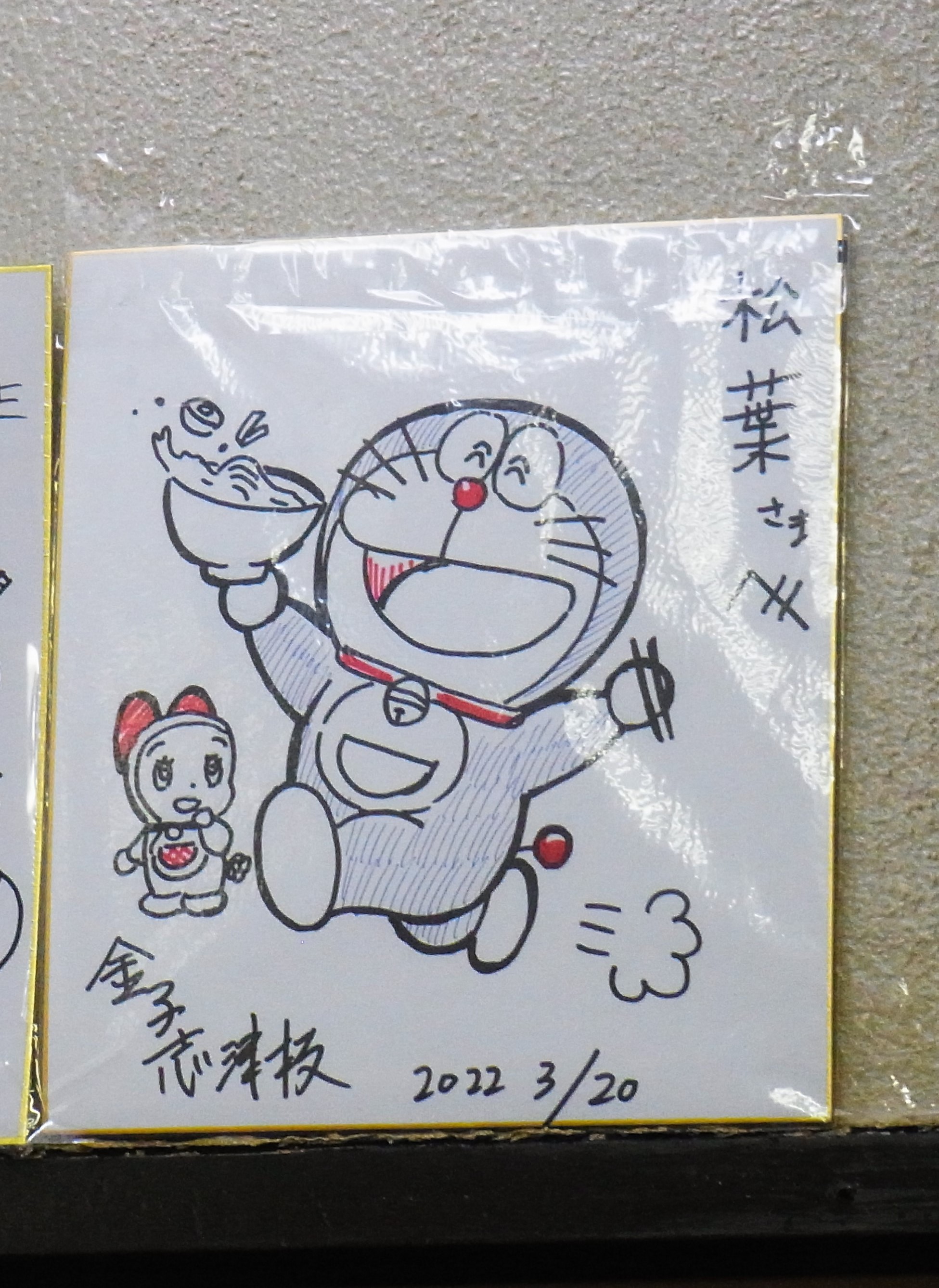 松葉の店内に金子志津枝さんの直筆色紙が飾られていました。