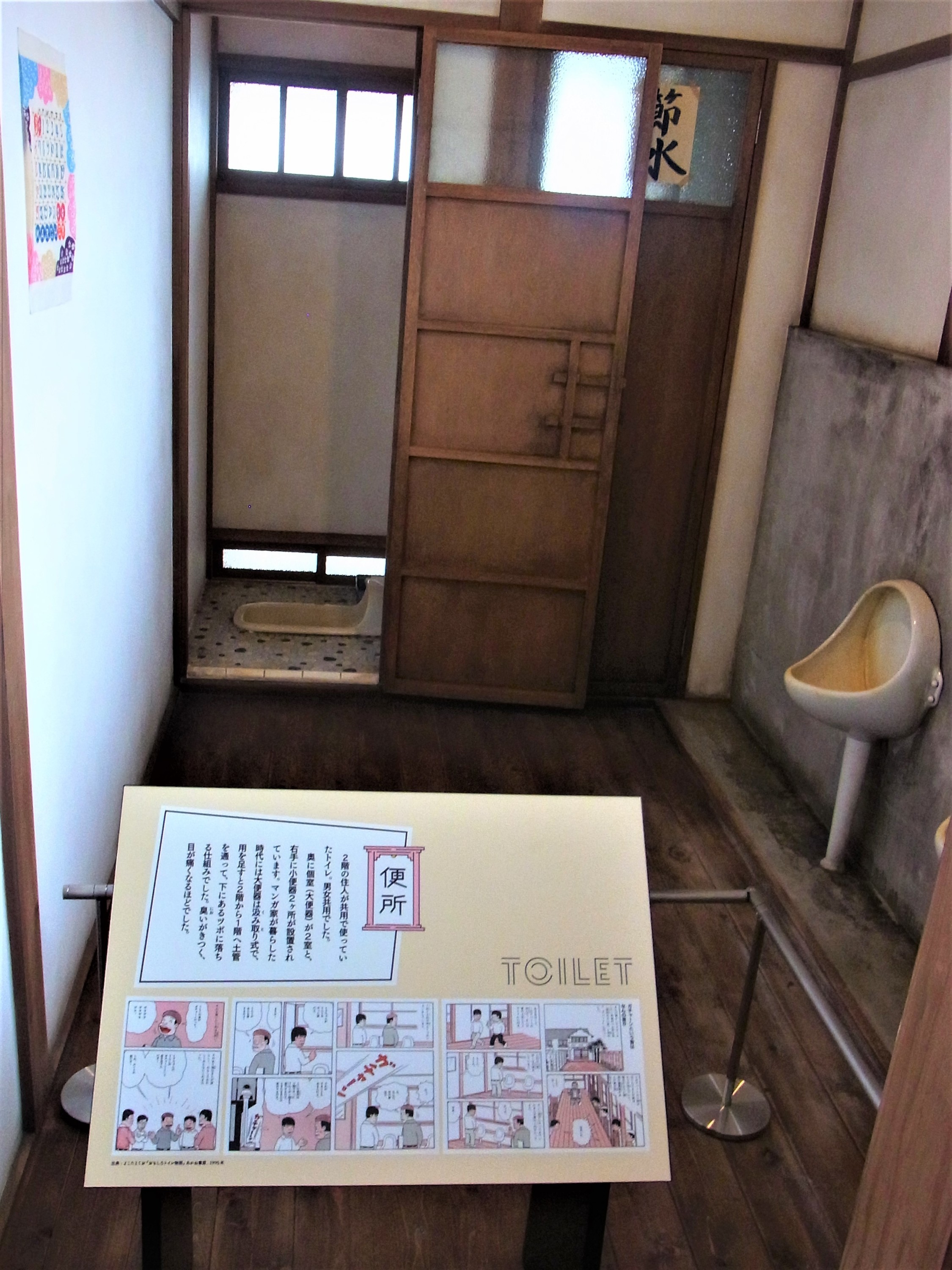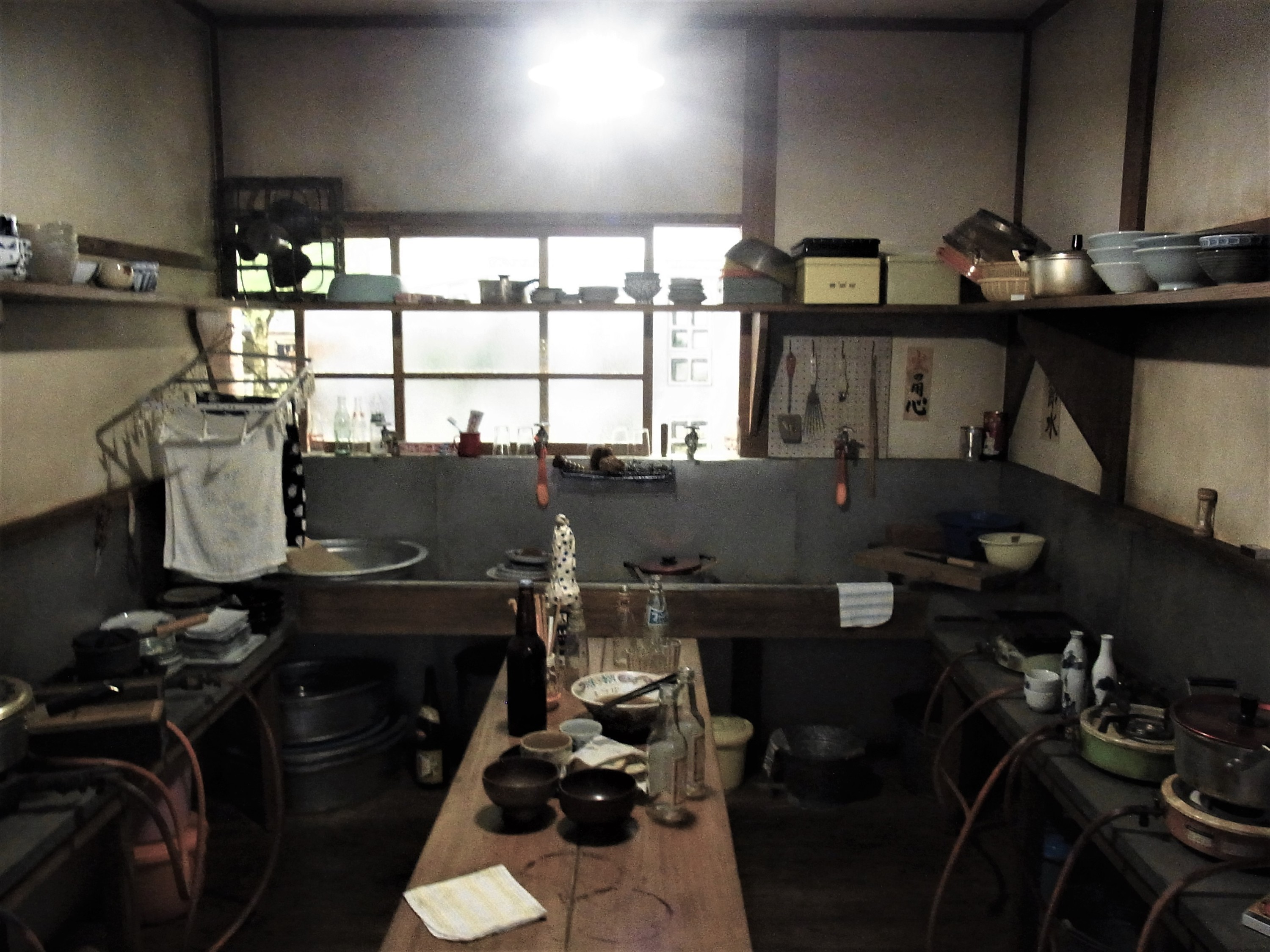 階段をのぼりきったところで正面に便所、その横に共同炊事場を確認。トイレも炊事場も細部まで作り込まれていて見惚れます。