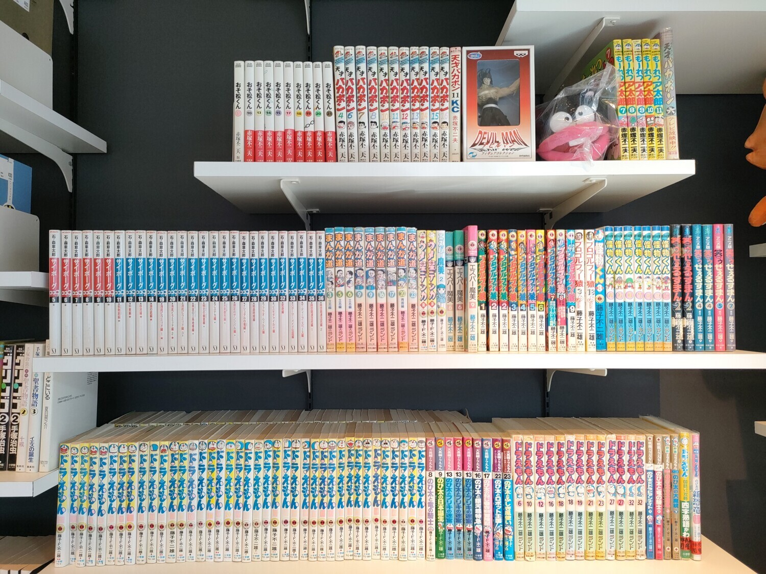 ふるいちトキワ荘通り店蔵【KURA】では、利用者が自由に蔵書を読んですごせるそうです。写真のとおり、藤子先生の本もたくさんありますよ。
