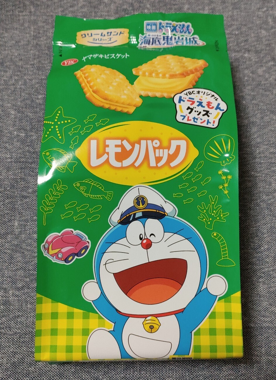 2026-02-08 ヤマザキビスケット『新・のび太の海底鬼岩城』オリジナルパッケージ ヤマザキビスケットのクリームサンドシリーズに『新・のび太の海底鬼岩城』オリジナルパッケージが登場しています。 今日行ったスーパーマーケットに、シリーズのうち「レモンパック」だけ売っていてお迎えしました。 こうしたタイアップ品を手にすると、映画公開を待つ気分が高まります。